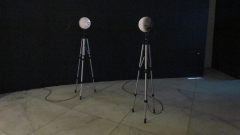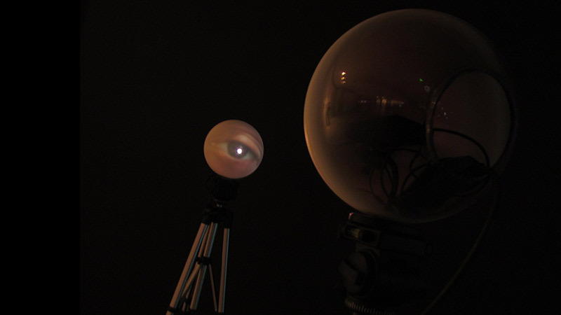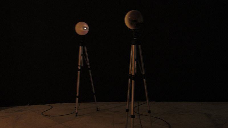Para essa vídeo-escultura, como define a obra o IQLab, o nome 010 foi gerado a partir da ideia indivíduo-relação-indíviduo, onde se atribuiu o “1” à relação, e os dois “0” aos indivíduos, como a própria instalação propõe, a interferência no relacionamento entre os dois pontos. As esculturas de proporções humanas se comunicam, olham uma nas outras e reagem à interferência do transeunte que, ao cruzar a linha dos olhos, interrompe o olhar. “010” também é “2” em língua binária, simbolizando a necessidade de dois elementos para que se estabeleça uma relação. Cada esfera contém um mini-projetor, que projeta na espera em frente a imagem de um olho, imaginando que hoje nossa imagem está sendo formada no mundo digital, através dos olhares de quem nos vê nas redes sociais, na internet e em outras plataformas digitais.
