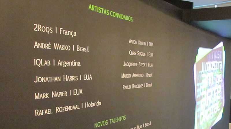 También tuvieron lugar obras de video, instalaciones, y esculturas interactivas de artistas como Rafael Rozendaal, Márcio Ambrosio, Paulo Barcelos, Jonathan Harris, Mark Napier, Jackeline Steck, Chris Sugrue, André Wakko y Aaron Koblin, entre otros.