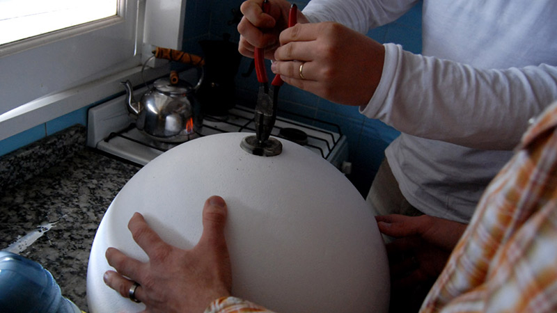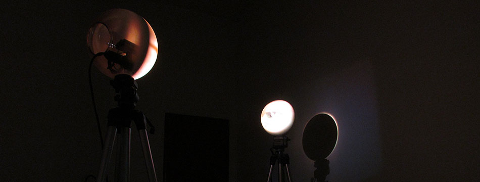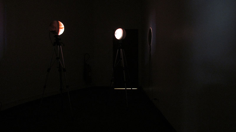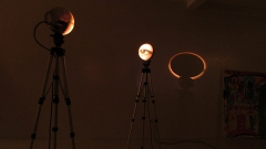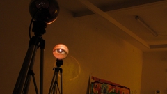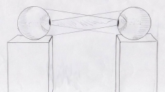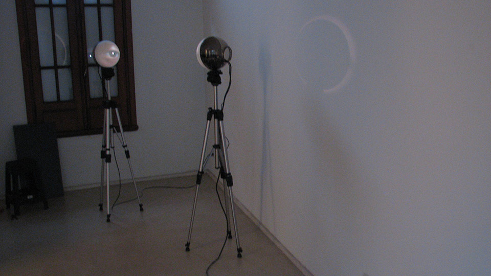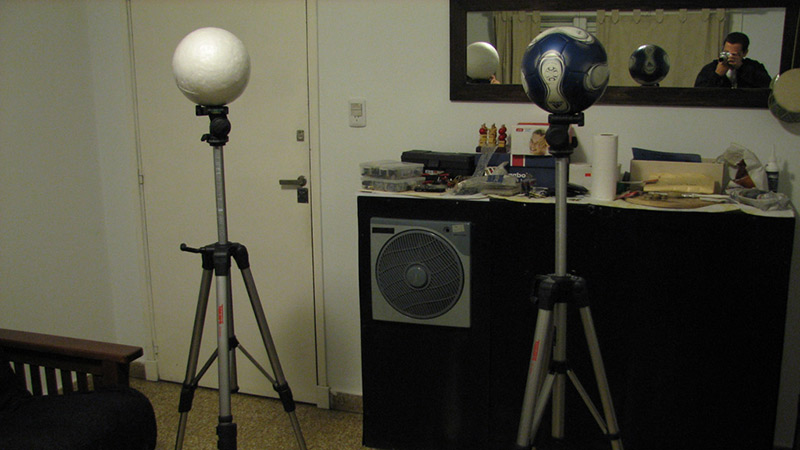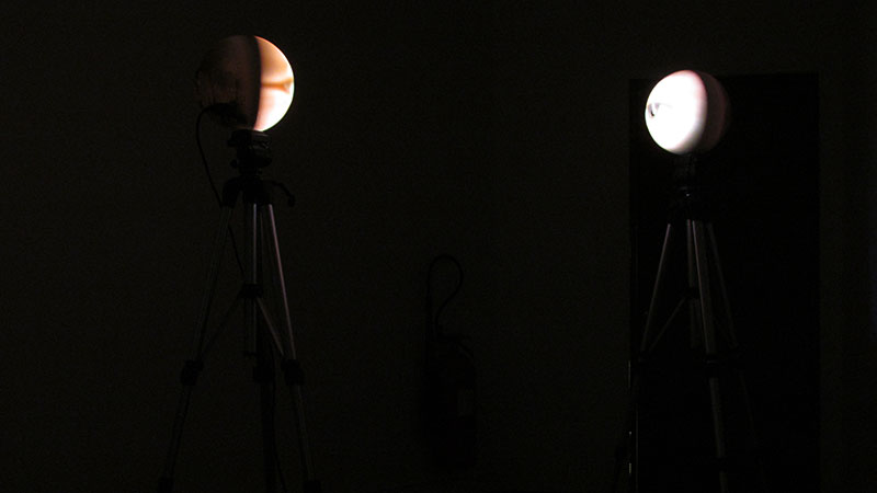 Separadas por aproximadamente por 1 metro de distancia, cada una de ellas se compone de, en su base, un trípode convencional de filmación, y en su cúspide, una esfera de vidrio de 25cm. de diámetro.
