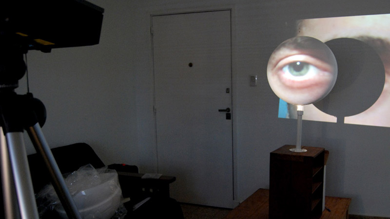 La videoinstalación “010” recupera la idea de la mirada como acto activo, y propone considerarla desde la perspectiva contemporánea de hipermediación de la realidad.