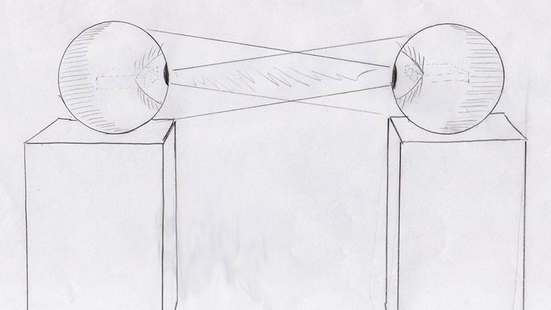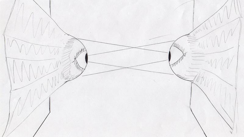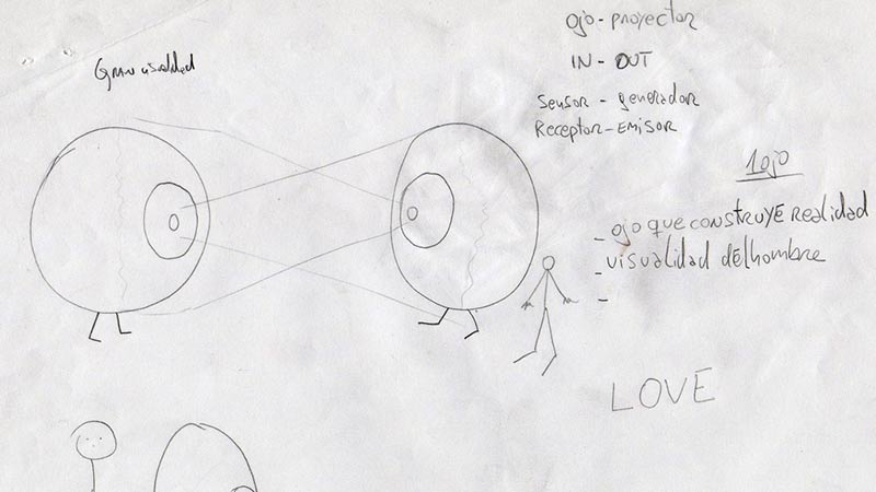 De este modo, en el mismo objeto ojo, se da la doble función de emisión (ojo como emisor de luz) y recepción (representación de un ojo como órgano sensible).