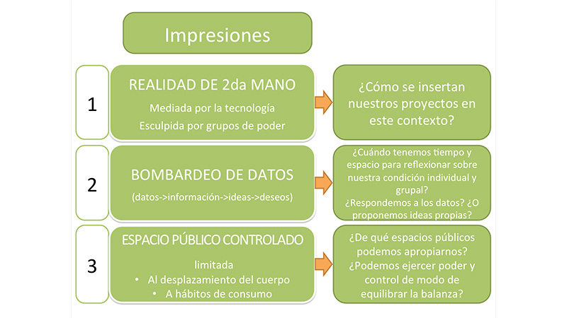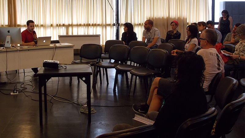 Bernardo Piñero (IQLab.com.ar, CEIArtE-UNTREF) analizó, a través de un recorrido por tres obras de IQLab ("Papeles", "La fuente de los sueños" y"Graffiti"), diferentes modos de resolver las diferencias entre los intereses propios del colectivo, y las agendas impuestas desde distintos contextos de producción. A su vez consideró la "evidente mediación de la realidad, el abrumador bombardeo de datos al que estamos expuestos, y el control del espacio público".