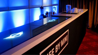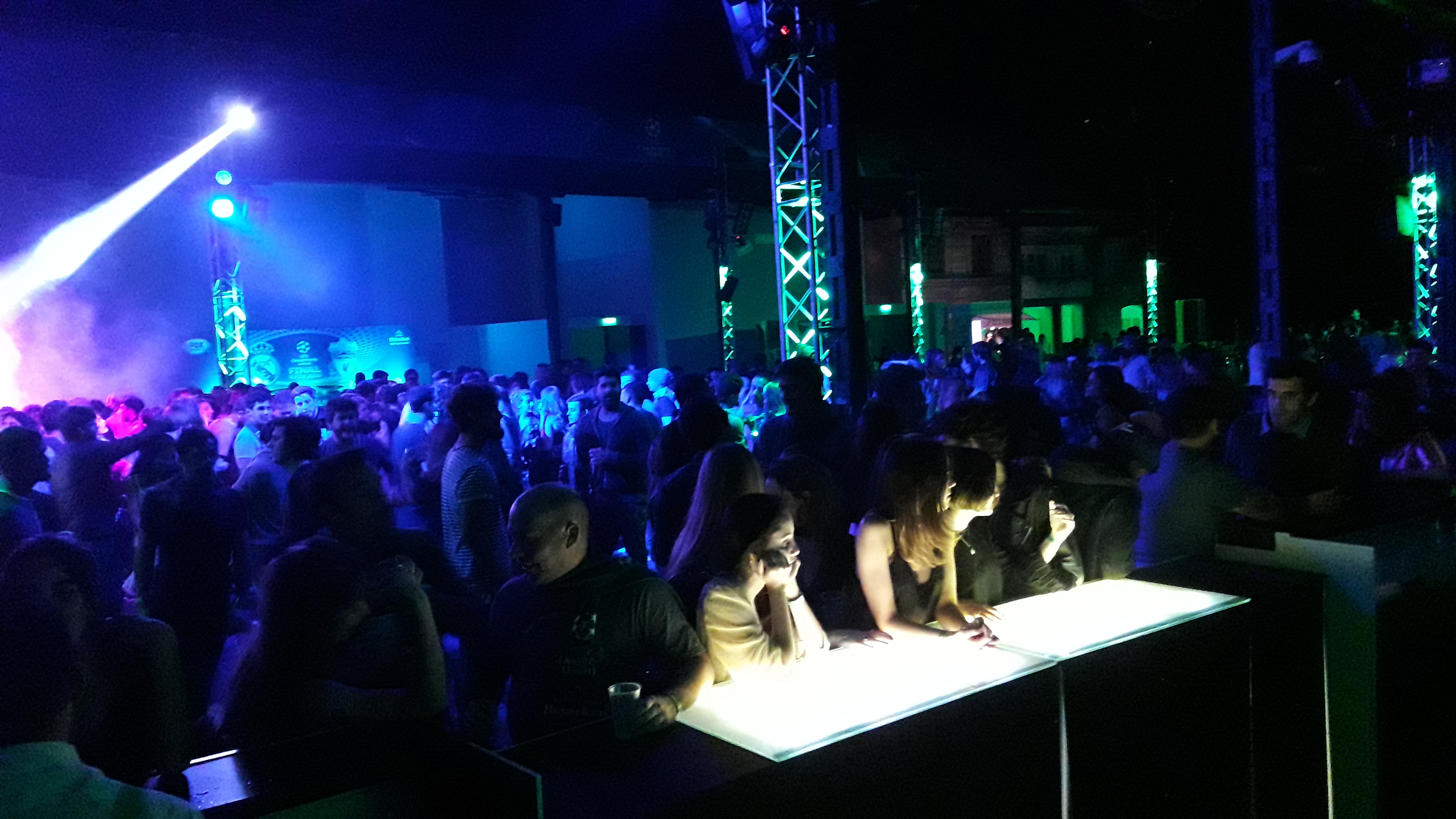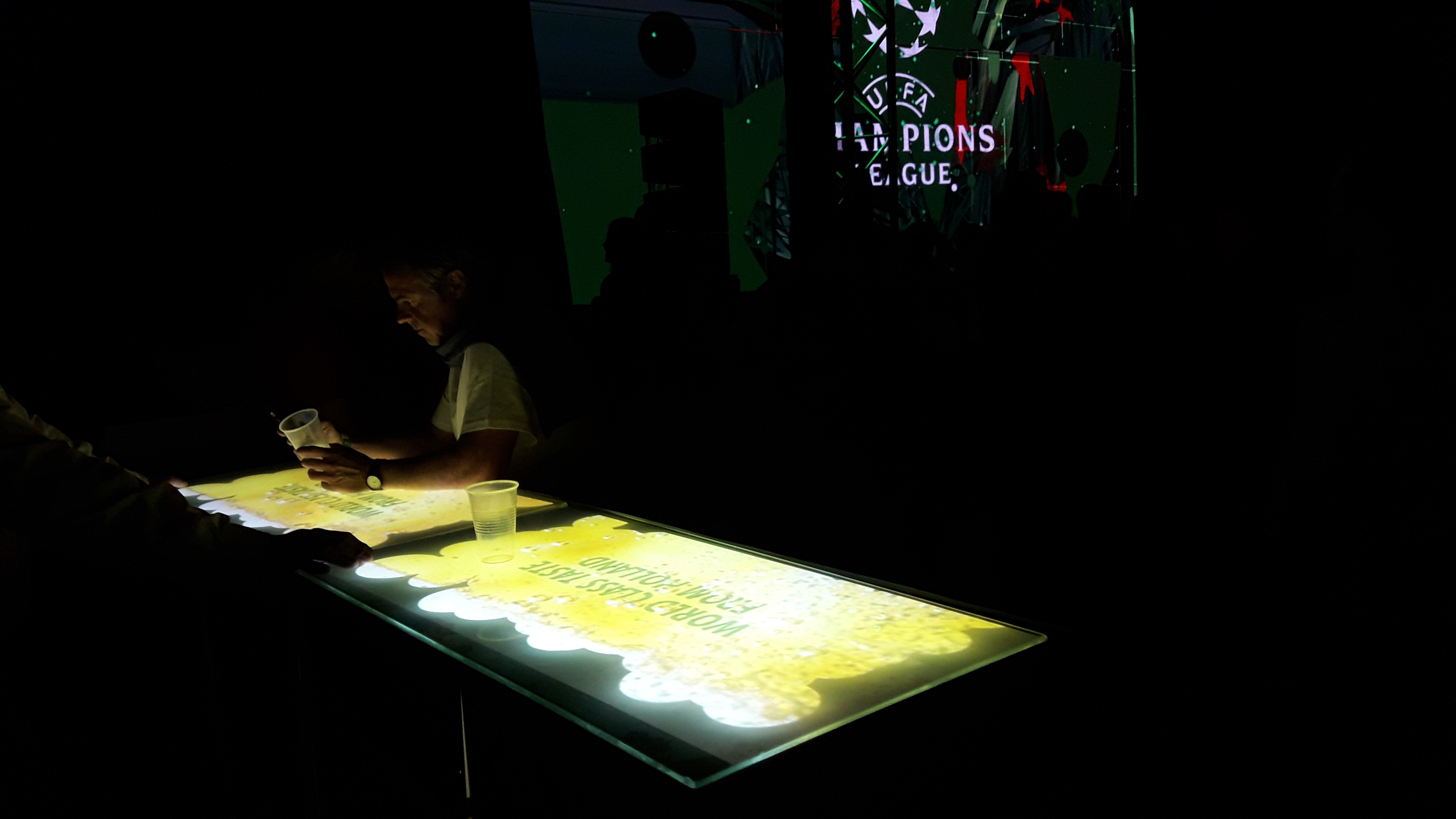 Una novedosa barra de tragos que proyecta formas, imágenes y colores en respuesta a la interacción del público. Al apoyar los distintos vasos o botellas sobre la barra, esta responde con proyecciones y efectos lumínicos sobre su superficie, produciendo fabulosos efectos que impactan a los invitados.
