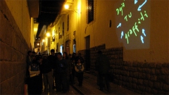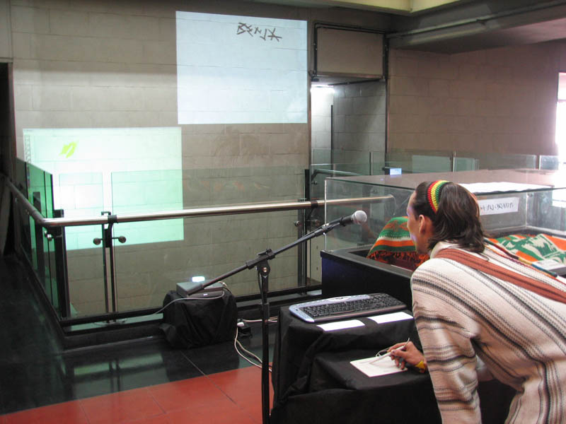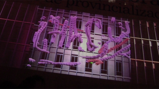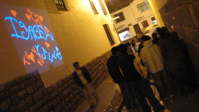 Luego de identificar a los graffitis como uno de los símbolos de apropiación del espacio publico, decidimos buscar la manera de hacerlos posibles de forma legitima. Realizar una inscripción (como una firma) que permitirá la proyección de la escritura en tiempo real sobre la pared. Esta es una manera de otorgarle al usuario la posibilidad de ejercer la escritura del Graffiti en forma legítima, expresarse, comunicarse con las personas y relacionarse con el/su espacio.