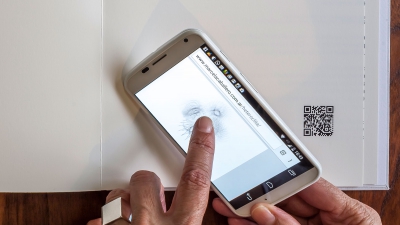 Dentro del libro un código QR impreso en una gran página blanca, hace de puente al mundo virtual donde los Graphobios cobran vida.