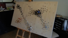 Con motivo de haber recibido información acerca de un concurso artístico que en sus bases de la convocatoria establecía que no serían consideradas las obras de "arte electrónico", nos embarcamos en la tarea de producir un trabajo que indagara en ese límite: arte electrónico/arte no electrónico. Por ello fuimos en dirección a experimentar con componentes electrónicos dispuestos sobre lienzo.