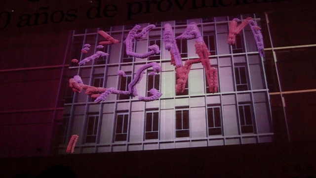 La intervención tuvo lugar en el contexto de una intervención más grande que consistió en un video mapping de la fachada, coordinado y dirigido por el artista Juan Sorrentino, quién a su vez nos convocó.