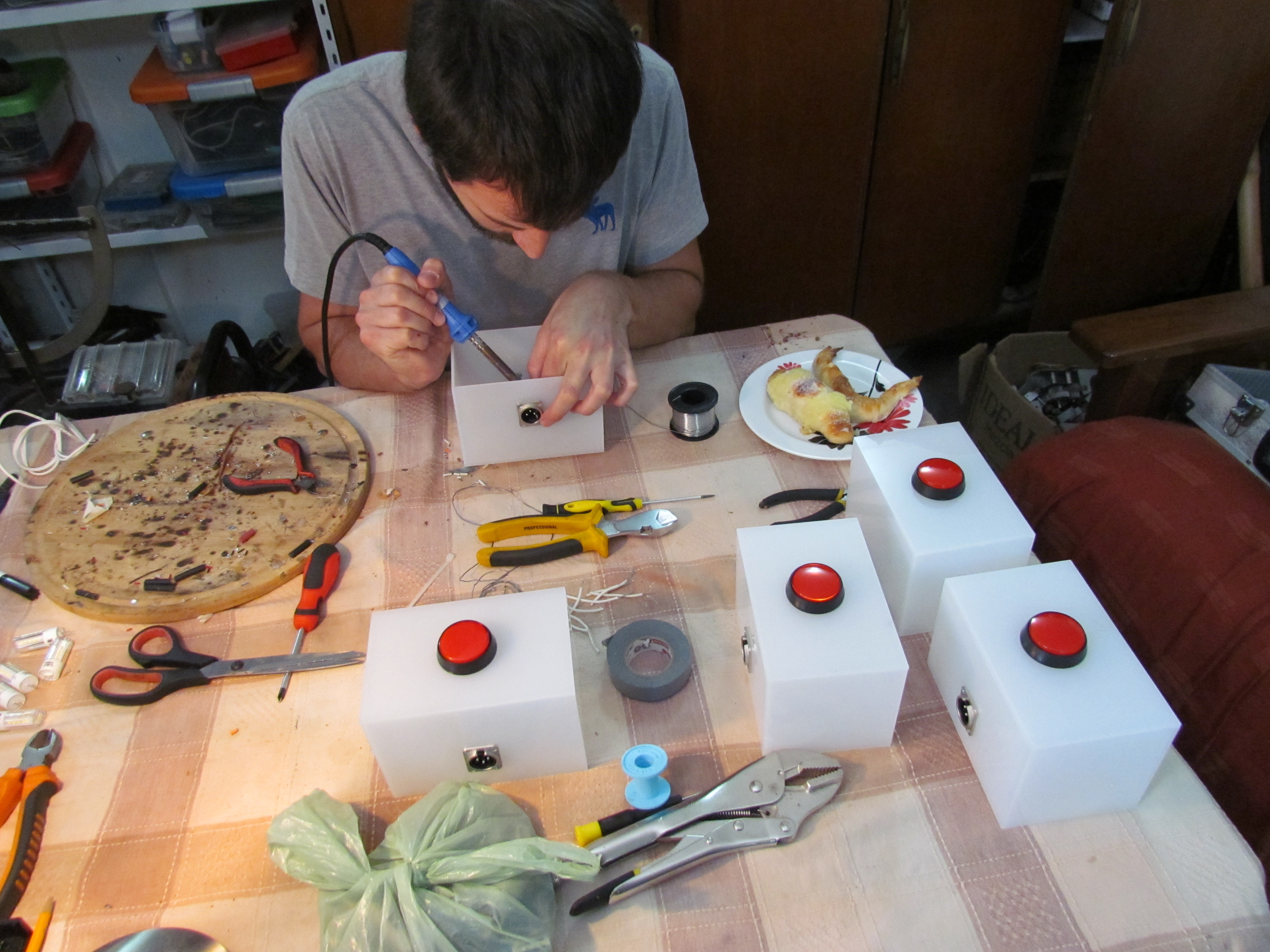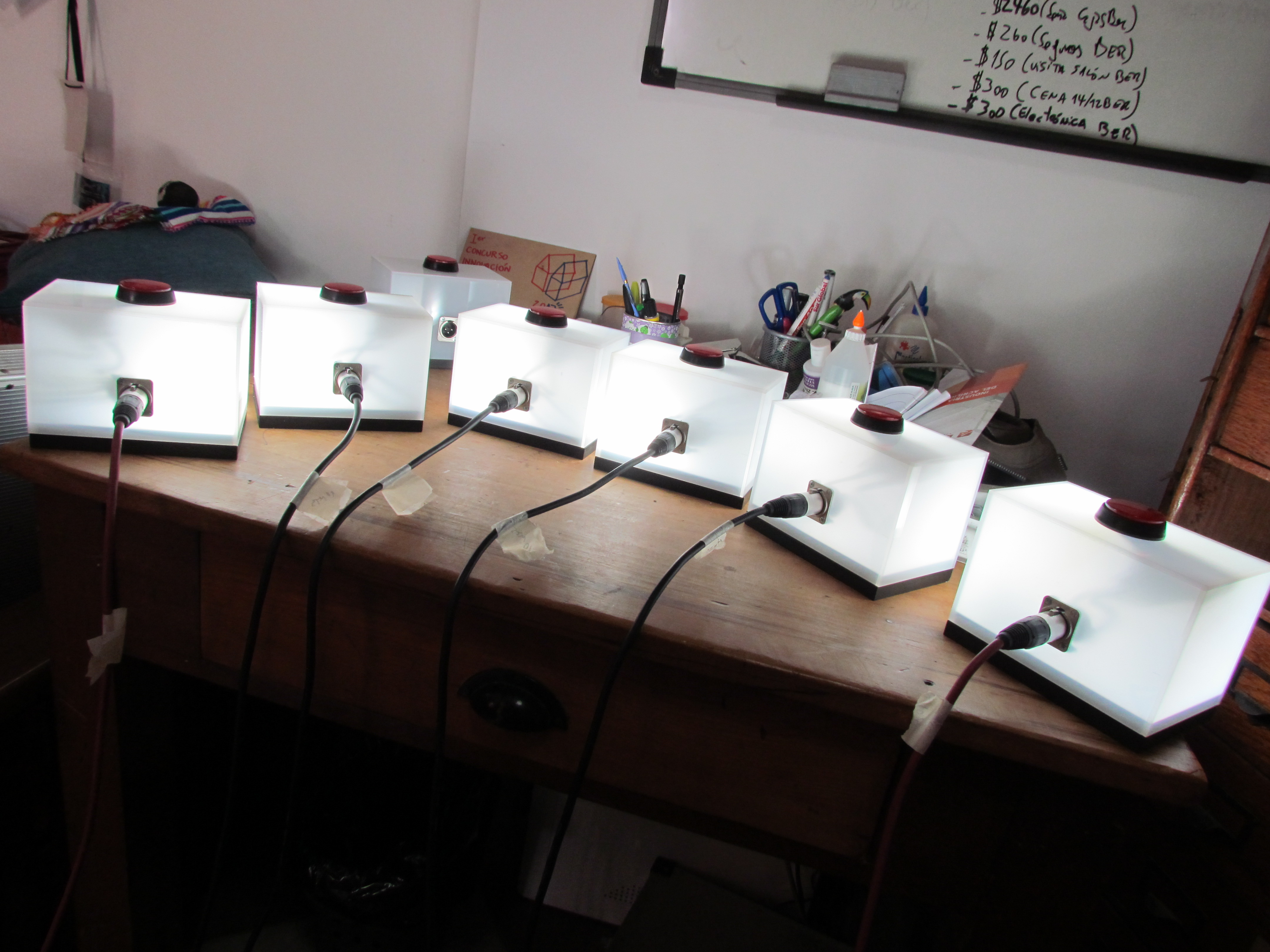 Diseñamos y desarrollamos una trivia para pantalla de LED controlada por pulsadores luminosos. Implementamos un juego de preguntas y respuestas para pantalla gigante donde 6 participantes apretaban cada uno un pulsador según desearan responder.