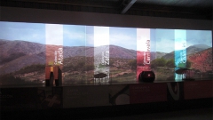 Intervención de la cabina de una pulverizadora, proyectando en el parabrisas un video realizado mediante la técnica de motion graphics. A su vez, en el interior instalamos un sistema de sonido 5.1, que reproduce a un alto volumen una ambientación sonora, generando un alto impacto en el público que ingresa en la cabina.