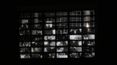 Inicialmente cada una de las fotografías fueron recortadas en rectángulos más pequeños, haciéndolos coincidir con el vidriado. En la secuencia de proyección, primero estos fragmentos se proyectaban desordenados, para luego luego ir ordenándose en sentido de lectura (de izquierda a derecha y arriba hacia abajo) ubicando cada parte en su lugar específico correspondiente, intercambiado ese lugar con el que lo estaba habitando anteriormente.