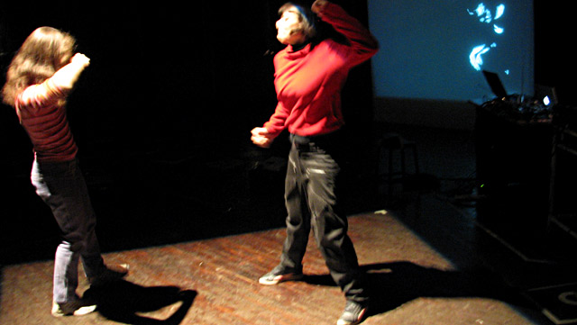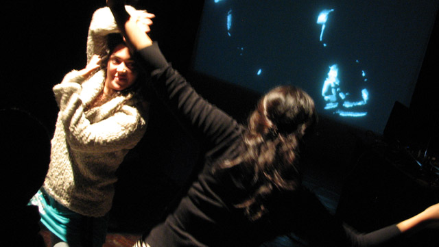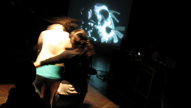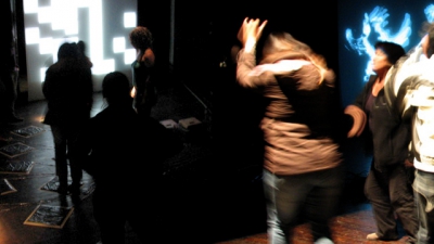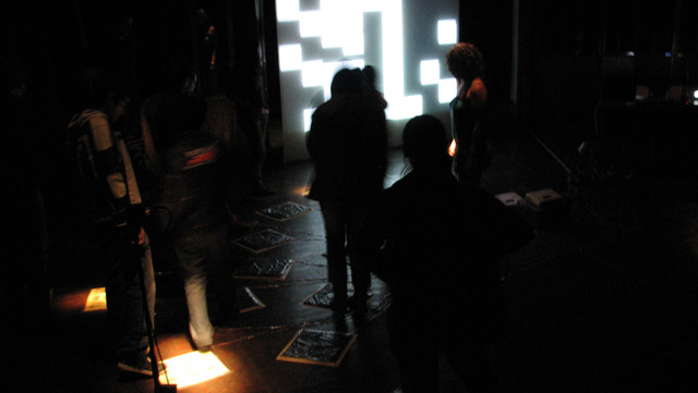 Luego de la performance de 30 minutos, hubo un espacio para que el público pudiera ingresar al escenario e interactuar con los diferentes dispositivos. A través de sus movimientos pudieron realizar cambios en tiempo real: modificar la música y componer con sonidos, crear imágenes que fueron proyectadas y variar la iluminación de la sala.