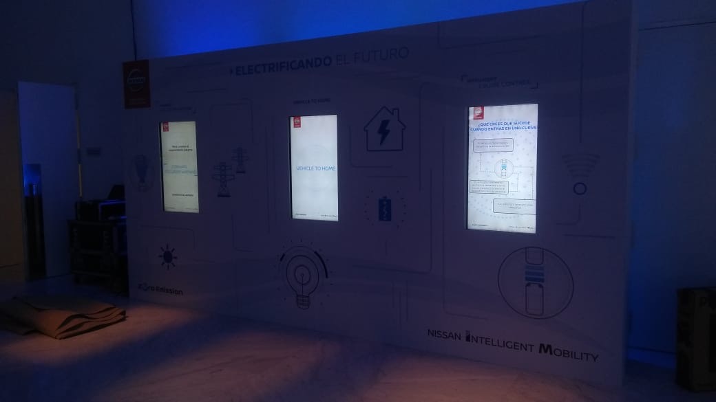 De esta manera los usuarios podían acceder a información de la empresa a través de pantallas circulares. Se realizó el montaje en computadoras del cliente y se calibraron los videos para que se vean correctamente en los espacios circulares de la pared.